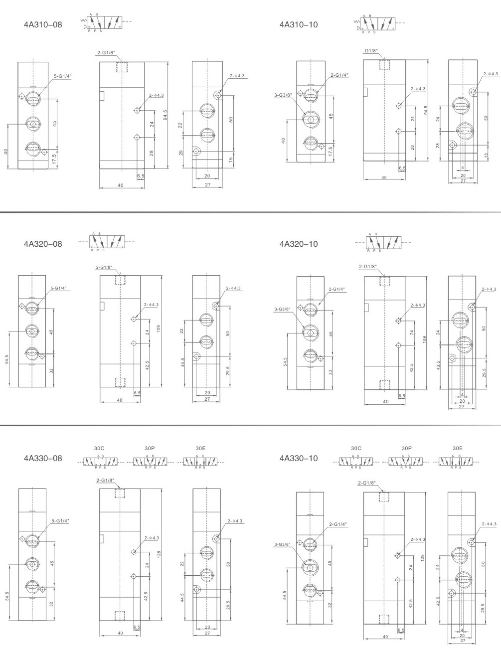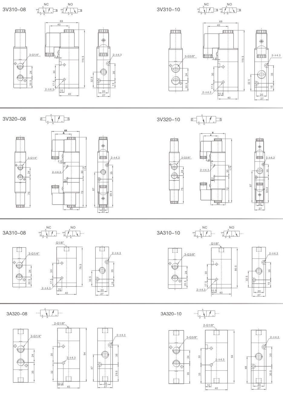 進(jìn)氣=出氣=G1/4” 排氣=G1/8”